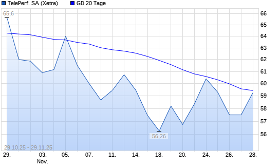 Mit dem Anstieg auf 59,24 EUR hat die Teleperformance-Aktie am 28.11.2025 die 20-Tage-Linie nach oben gekreuzt.Die Teleperformance-Aktie befindet sich seit dem 13.06.2025 im langfristigen Abwärtstrend ...weiterlesen