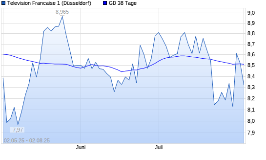 Mit dem Rücksetzer auf 8,35 EUR hat die Television Francaise 1-Aktie am 01.08.2025 die 38-Tage-Linie nach unten gekreuzt.Die Television Francaise 1-Aktie befindet sich seit dem 14.02.2025 ...weiterlesen