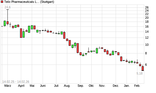 Mit dem Rücksetzer auf 5,18 EUR hat die Telix Pharmaceuticals-Aktie (ISIN AU000000TLX2) am 13.02.2026 ein neues 12-Monats-Tief erreicht und damit den Kurs vom 12.02.2026 eingestellt.Die ...weiterlesen