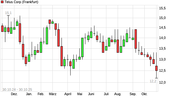Mit dem Rücksetzer auf 12,50 EUR hat die Telus-Aktie (ISIN CA87971M1032) am 29.10.2025 ein neues 6-Monats-Tief erreicht und damit den Kurs vom 16.10.2025 eingestellt.Die Telus-Aktie befindet ...weiterlesen
