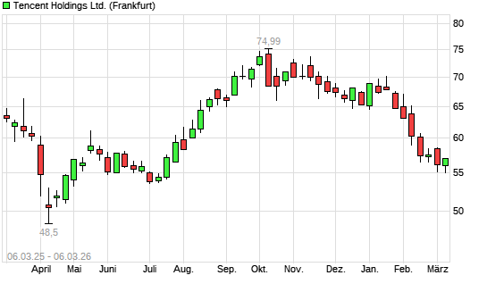 Mit dem Rücksetzer auf 55,01 EUR hat die Tencent-Aktie (ISIN KYG875721634) am 05.03.2026 ein neues 6-Monats-Tief erreicht und damit den Kurs vom 26.02.2026 ...weiterlesen