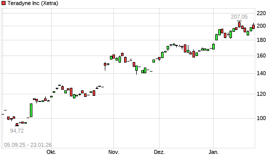Mit dem Anstieg auf 199,92 EUR hat die Teradyne-Aktie (ISIN US8807701029) am 22.01.2026 ein neues All-Time-High erreicht und damit den Kurs vom 15.01.2026 eingestellt.Die Teradyne-Aktie befindet ...weiterlesen