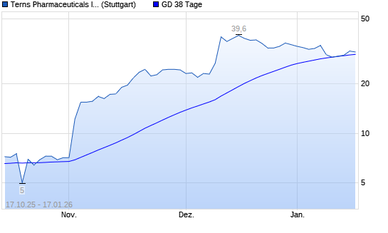 Mit dem Rücksetzer auf 31,20 EUR hat die Terns Pharmaceuticals-Aktie am 16.01.2026 die 38-Tage-Linie nach unten gekreuzt.Die Terns Pharmaceuticals-Aktie befindet sich seit dem 14.07.2025 ...weiterlesen