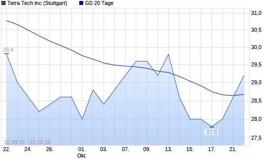 Mit dem Anstieg auf 28,40 EUR hat die Tetra Tech-Aktie am 21.10.2025 die 20-Tage-Linie nach oben gekreuzt.Die Tetra Tech-Aktie befindet sich seit dem 23.01.2025 im langfristigen Abwärtstrend ...weiterlesen