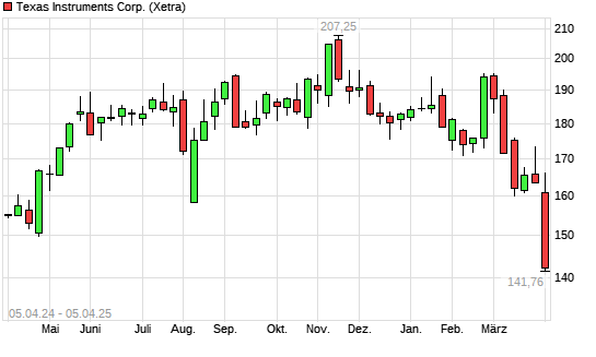 Mit dem Rücksetzer auf 144,00 EUR hat die Texas Instruments-Aktie (ISIN US8825081040) am 04.04.2025 ein neues 12-Monats-Tief erreicht und damit den Kurs vom 19.04.2024 eingestellt.Die Texas ...weiterlesen
