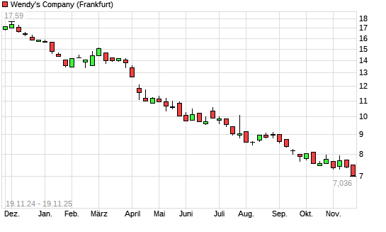 Mit dem Rücksetzer auf 7,10 EUR hat die The Wendy's Company-Aktie (ISIN US95058W1009) am 18.11.2025 ein neues 5-Jahres-Tief erreicht und damit den Kurs vom 17.11.2025 eingestellt.Die The ...weiterlesen