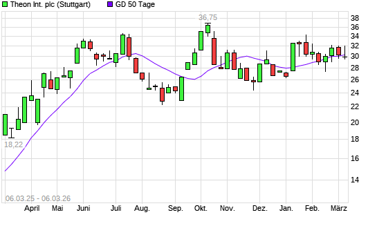 Mit dem Rücksetzer auf 29,95 EUR hat die Theon International-Aktie am 05.03.2026 die 50-Tage-Linie nach unten gekreuzt.Die Theon International-Aktie befindet sich seit dem ...weiterlesen