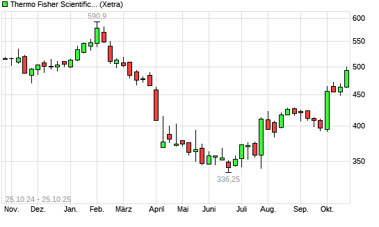 Mit dem Anstieg auf 493,15 EUR hat die Thermo Fisher-Aktie (ISIN US8835561023) am 24.10.2025 ein neues 6-Monats-Hoch erreicht und damit den Kurs vom 23.10.2025 eingestellt.Die ...weiterlesen