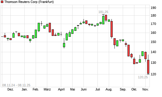 Mit dem Rücksetzer auf 120,75 EUR hat die Thomson Reuters Corp.-Aktie (ISIN CA8849038085) am 07.11.2025 ein neues 12-Monats-Tief erreicht und damit den Kurs vom ...weiterlesen