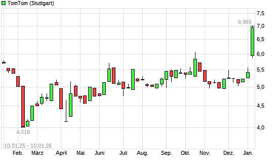 Mit dem Anstieg auf 6,91 EUR hat die TomTom-Aktie (ISIN NL0013332471) am 09.01.2026 ein neues 12-Monats-Hoch erreicht und damit den Kurs vom 08.01.2026 eingestellt.Die TomTom-Aktie befindet ...weiterlesen