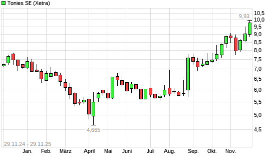 Mit dem Anstieg auf 9,72 EUR hat die Tonies-Aktie (ISIN LU2333563281) am 28.11.2025 ein neues 3-Jahres-Hoch erreicht und damit den Kurs vom 27.11.2025 eingestellt.Die Tonies-Aktie befindet sich ...weiterlesen
