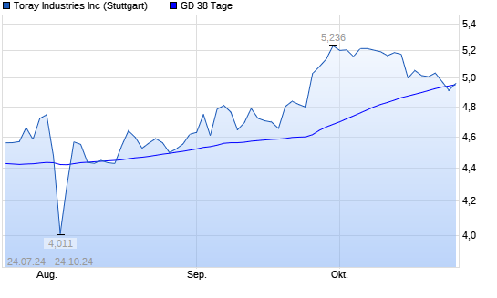 Mit dem Rücksetzer auf 4,91 EUR hat die Toray Industries-Aktie am 23.10.2024 die 38-Tage-Linie nach unten gekreuzt.Die Toray Industries-Aktie befindet sich seit dem 15.08.2024 im langfristigen ...weiterlesen