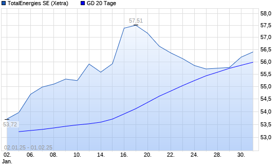 Mit dem Rücksetzer auf 55,93 EUR hat die Totalenergies (ex Total)-Aktie am 31.01.2025 die 20-Tage-Linie nach unten gekreuzt.Die Totalenergies (ex Total)-Aktie befindet sich seit dem 08.10.2024 ...weiterlesen