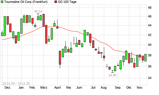 Mit dem Anstieg auf 38,13 EUR hat die Tourmaline Oil-Aktie am 12.11.2025 die 100-Tage-Linie nach oben gekreuzt.Die Tourmaline Oil-Aktie befindet sich seit dem 23.06.2025 im langfristigen Abwärtstrend ...weiterlesen