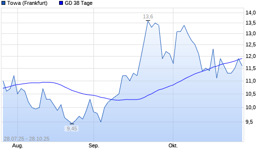 Mit dem Anstieg auf 11,90 EUR hat die Towa-Aktie am 27.10.2025 die 38-Tage-Linie nach oben gekreuzt.Die Towa-Aktie befindet sich seit dem 04.09.2025 im langfristigen Aufwärtstrend und hat in ...weiterlesen