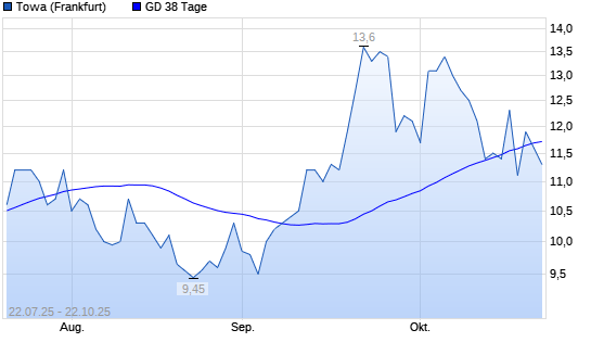 Mit dem Rücksetzer auf 11,60 EUR hat die Towa-Aktie am 21.10.2025 die 38-Tage-Linie nach unten gekreuzt.Die Towa-Aktie befindet sich seit dem 04.09.2025 im langfristigen Aufwärtstrend und ...weiterlesen