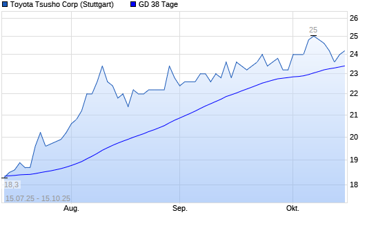 Mit dem Anstieg auf 24,00 EUR hat die Toyota Tsusho-Aktie am 14.10.2025 die 38-Tage-Linie nach oben gekreuzt.Die Toyota Tsusho-Aktie befindet sich seit dem 28.04.2025 im langfristigen Aufwärtstrend ...weiterlesen