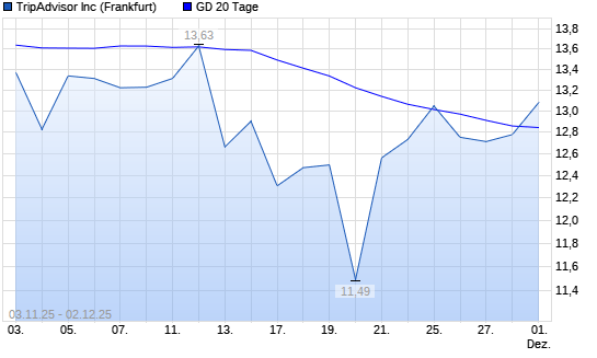 Mit dem Anstieg auf 13,07 EUR hat die TripAdvisor-Aktie am 01.12.2025 die 20-Tage-Linie nach oben gekreuzt.Die TripAdvisor-Aktie befindet sich seit dem 13.11.2025 im langfristigen Abwärtstrend ...weiterlesen
