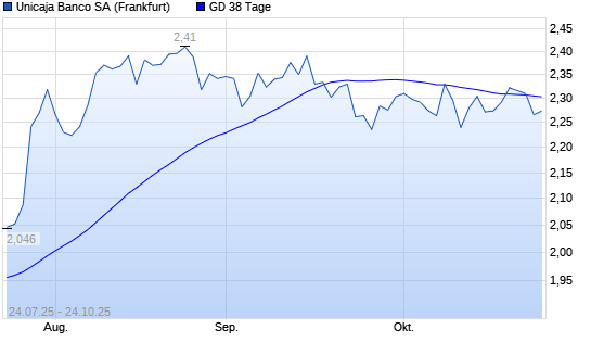 Mit dem Rücksetzer auf 2,27 EUR hat die UNICAJA BANCO SA-Aktie am 23.10.2025 die 38-Tage-Linie nach unten gekreuzt.Die UNICAJA BANCO SA-Aktie befindet sich seit dem 14.11.2024 im langfristigen ...weiterlesen