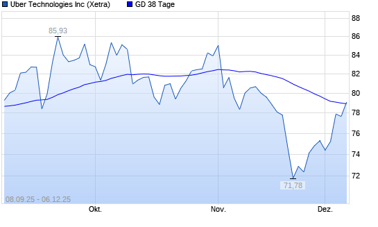 Mit dem Anstieg auf 79,09 EUR hat die Uber-Aktie am 05.12.2025 die 38-Tage-Linie nach oben gekreuzt.Die Uber-Aktie befindet sich seit dem 03.12.2025 im langfristigen Aufwärtstrend und hat in ...weiterlesen