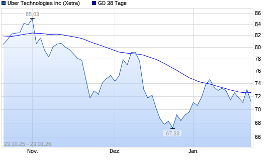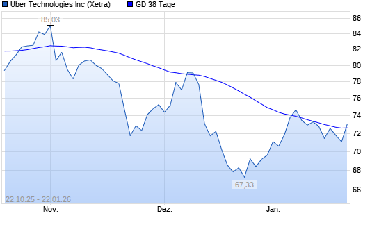 Mit dem Rücksetzer auf 70,00 EUR hat die Uber-Aktie am 22.01.2026 die 38-Tage-Linie nach unten gekreuzt.Die Uber-Aktie befindet sich seit dem 10.12.2025 im langfristigen Abwärtstrend und ...weiterlesen