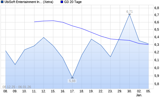 Mit dem Rücksetzer auf 6,17 EUR hat die Ubisoft-Aktie am 05.01.2026 die 20-Tage-Linie nach unten gekreuzt.Die Ubisoft-Aktie befindet sich seit dem 28.03.2025 im langfristigen Abwärtstrend ...weiterlesen