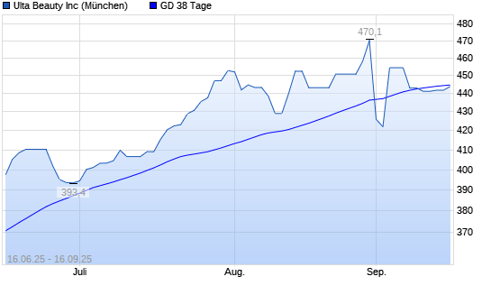 Mit dem Rücksetzer auf 437,20 EUR hat die Ulta Beauty-Aktie am 15.09.2025 die 38-Tage-Linie nach unten gekreuzt.Die Ulta Beauty-Aktie befindet sich seit dem 12.05.2025 im langfristigen ...weiterlesen