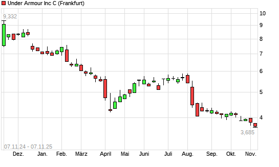 Mit dem Rücksetzer auf 3,69 EUR hat die Under Armour C-Aktie (ISIN US9043112062) am 06.11.2025 ein neues All-Time-Low erreicht und damit den Kurs vom 04.11.2025 eingestellt.Die Under Armour ...weiterlesen