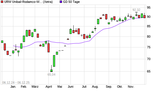 Mit dem Rücksetzer auf 89,48 EUR hat die Unibail-Rodamco-Westfield-Aktie am 05.12.2025 die 50-Tage-Linie nach unten gekreuzt.Die Unibail-Rodamco-Westfield-Aktie befindet sich seit dem 12.05.2025 ...weiterlesen
