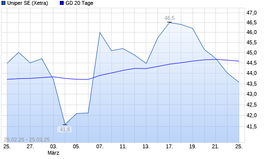 Mit dem Rücksetzer auf 44,13 EUR hat die Uniper-Aktie am 24.03.2025 die 20-Tage-Linie nach unten gekreuzt.Die Uniper-Aktie befindet sich seit dem 07.03.2025 im langfristigen Aufwärtstrend ...weiterlesen