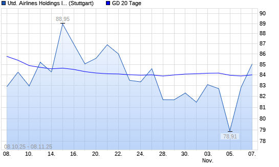 Mit dem Anstieg auf 84,08 EUR hat die United Airlines-Aktie am 07.11.2025 die 20-Tage-Linie nach oben gekreuzt.Die United Airlines-Aktie befindet sich seit dem 02.10.2025 im langfristigen Aufwärtstrend ...weiterlesen