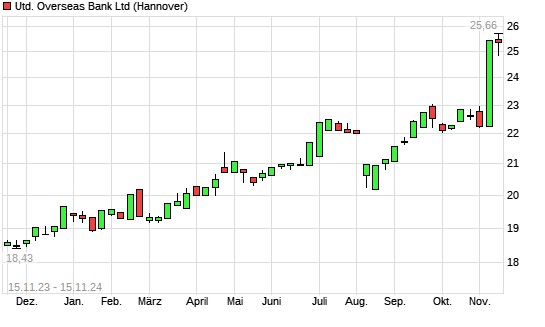 Mit dem Anstieg auf 25,63 EUR hat die United Overseas Bank-Aktie (ISIN SG1M31001969) am 14.11.2024 ein neues All-Time-High erreicht und damit den Kurs vom 08.11.2024 eingestellt.Die United Overseas ...weiterlesen