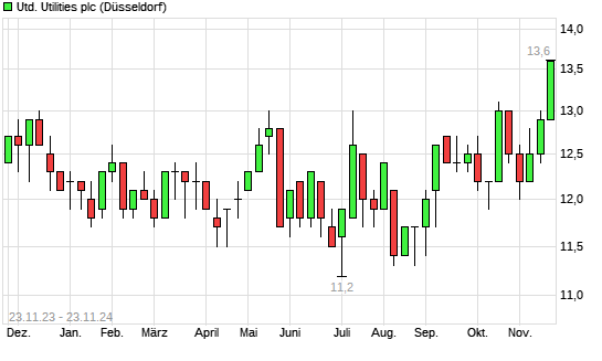 Mit dem Anstieg auf 13,60 EUR hat die United Utilities-Aktie (ISIN GB00B39J2M42) am 22.11.2024 ein neues 12-Monats-Hoch erreicht und damit den Kurs vom 21.11.2024 eingestellt.Die United Utilities-Aktie ...weiterlesen