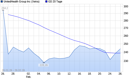 Mit dem Anstieg auf 239,90 EUR hat die UnitedHealth Group-Aktie am 25.02.2026 die 20-Tage-Linie nach oben gekreuzt.Die UnitedHealth Group-Aktie befindet sich seit dem 27.01.2026 ...weiterlesen