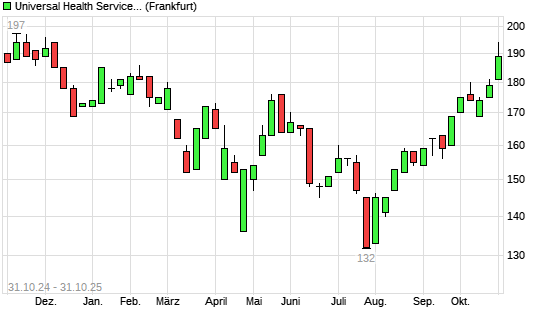 Mit dem Anstieg auf 194,00 EUR hat die Universal Health Services-Aktie (ISIN US9139031002) am 30.10.2025 ein neues 6-Monats-Hoch erreicht und damit den Kurs vom 28.10.2025 eingestellt.Die Universal ...weiterlesen