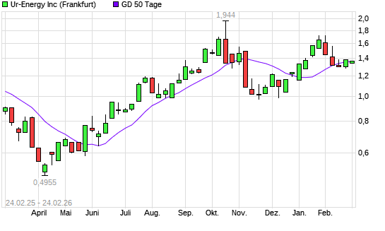 Mit dem Rücksetzer auf 1,34 EUR hat die Ur-Energy-Aktie am 23.02.2026 die 50-Tage-Linie nach unten gekreuzt.Die Ur-Energy-Aktie befindet sich seit dem 12.12.2025 im ...weiterlesen