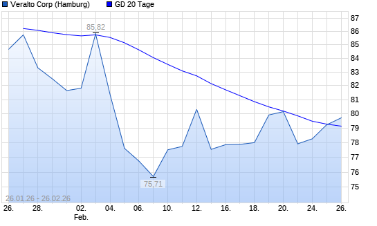 Mit dem Anstieg auf 78,79 EUR hat die VERALTO-Aktie am 25.02.2026 die 20-Tage-Linie nach oben gekreuzt.Die VERALTO-Aktie befindet sich seit dem 20.01.2026 im langfristigen Abwärtstrend ...weiterlesen