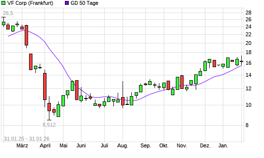 Mit dem Anstieg auf 16,38 EUR hat die VF Corporation-Aktie am 30.01.2026 die 50-Tage-Linie nach oben gekreuzt.Die VF Corporation-Aktie befindet sich seit dem 20.11.2025 im ...weiterlesen
