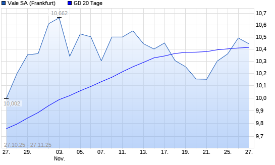 Mit dem Anstieg auf 10,49 EUR hat die Vale-Aktie am 26.11.2025 die 20-Tage-Linie nach oben gekreuzt.Die Vale-Aktie befindet sich seit dem 04.09.2025 im langfristigen Aufwärtstrend und hat in ...weiterlesen
