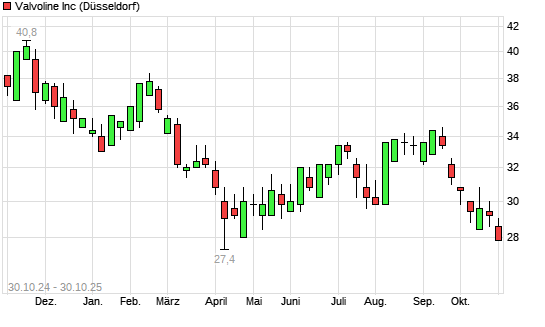 Mit dem Rücksetzer auf 28,00 EUR hat die Valvoline-Aktie (ISIN US92047W1018) am 29.10.2025 ein neues 12-Monats-Tief erreicht und damit den Kurs vom 08.04.2025 eingestellt.Die Valvoline-Aktie ...weiterlesen