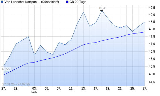 Mit dem Anstieg auf 48,25 EUR hat die Van Lanschot Kempen-Aktie am 26.02.2025 die 20-Tage-Linie nach oben gekreuzt.Der Abstand zur 200-Tage-Linie beträgt aktuell +15,08%. ##trendBox## Die ...weiterlesen
