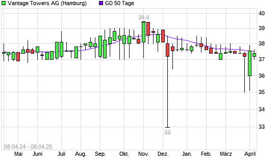 Mit dem Rücksetzer auf 37,20 EUR hat die Vantage Towers-Aktie am 07.04.2025 die 50-Tage-Linie nach unten gekreuzt.Die Vantage Towers-Aktie befindet sich seit dem 05.03.2025 ...weiterlesen