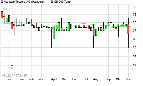 Mit dem Anstieg auf 37,80 EUR hat die Vantage Towers-Aktie am 06.11.2025 die 200-Tage-Linie nach oben gekreuzt.Die Vantage Towers-Aktie befand sich seit dem 31.10.2025 im ...weiterlesen