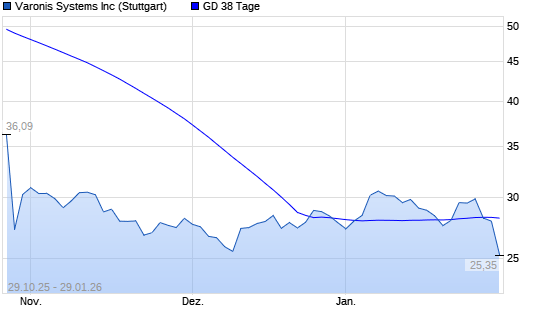 Mit dem Rücksetzer auf 28,49 EUR hat die Varonis Systems-Aktie am 28.01.2026 die 38-Tage-Linie nach unten gekreuzt.Die Varonis Systems-Aktie befindet sich seit dem 29.10.2025 ...weiterlesen