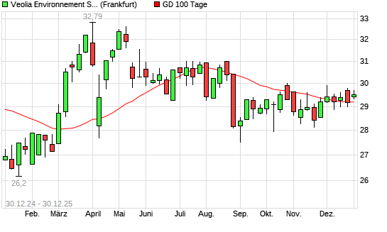 Mit dem Anstieg auf 29,49 EUR hat die Veolia Environnement-Aktie am 29.12.2025 die 100-Tage-Linie nach oben gekreuzt.Die Veolia Environnement-Aktie befindet sich seit dem 26.08.2025 im langfristigen ...weiterlesen