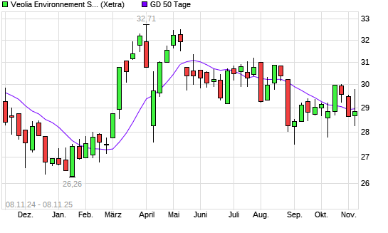 Mit dem Rücksetzer auf 28,86 EUR hat die Veolia Environnement-Aktie am 07.11.2025 die 50-Tage-Linie nach unten gekreuzt.Die Veolia Environnement-Aktie befindet sich seit dem 26.08.2025 ...weiterlesen