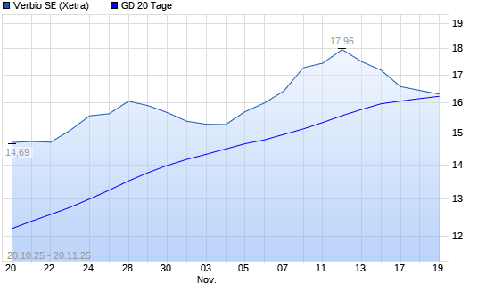 Mit dem Rücksetzer auf 16,00 EUR hat die Verbio Vereinigte Bioenergie-Aktie am 19.11.2025 die 20-Tage-Linie nach unten gekreuzt.Die Verbio Vereinigte Bioenergie-Aktie befindet sich seit ...weiterlesen