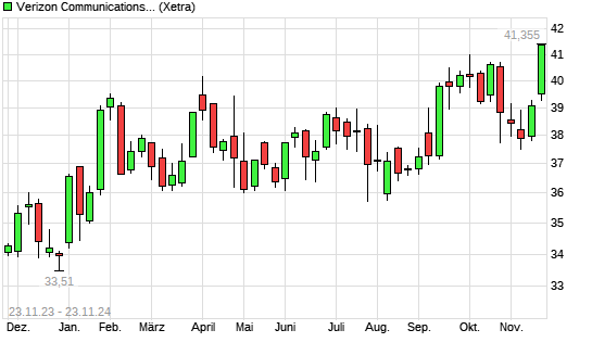 Mit dem Anstieg auf 41,56 EUR hat die Verizon-Aktie (ISIN US92343V1044) am 22.11.2024 ein neues 12-Monats-Hoch erreicht und damit den Kurs vom 02.10.2024 eingestellt.Die Verizon-Aktie befindet ...weiterlesen
