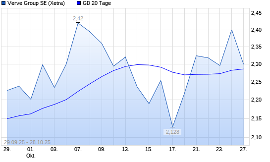 Mit dem Rücksetzer auf 2,29 EUR hat die Verve Group-Aktie am 27.10.2025 die 20-Tage-Linie nach unten gekreuzt.Die Verve Group-Aktie befindet sich seit dem 14.07.2025 im langfristigen Abwärtstrend ...weiterlesen
