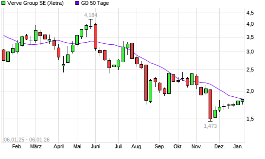 Mit dem Rücksetzer auf 1,76 EUR hat die Verve Group-Aktie am 05.01.2026 die 50-Tage-Linie nach unten gekreuzt.Die Verve Group-Aktie befindet sich seit dem 14.07.2025 im ...weiterlesen